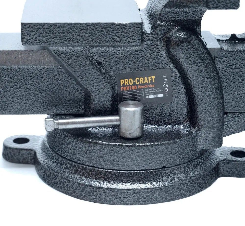 Тиски слесарные Procraft PBV100 ? это инструмент, используемый в слесарном деле для надежного удержания различных деталей во время работы над ними. Эти тиски изготовлены из высококачественных материалов и предназначены для ежедневного использования в слесарной мастерской.