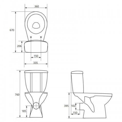 - УНИТАЗ-КОМПАКТ KADDA 820 MITO 010 3/6 С ПОЛИПРОПИЛЕНОВЫМ СИДЕНИЕМ