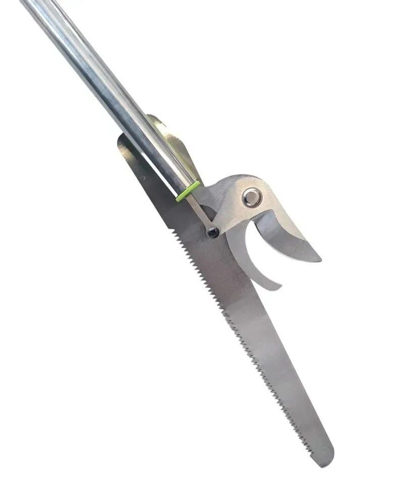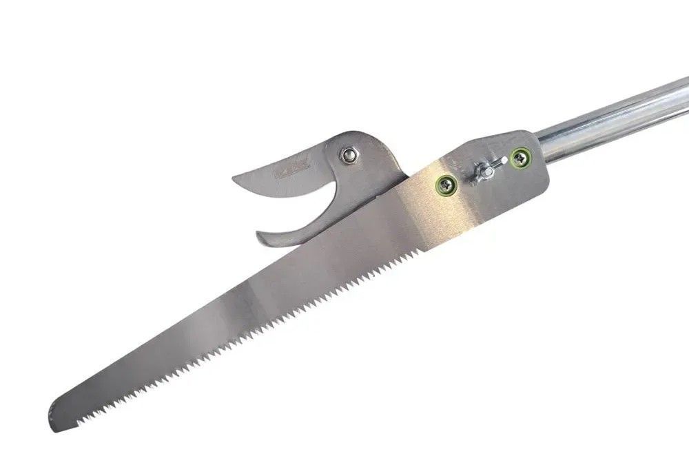 Включает в себя сучкорез и дополнительно оборудован съемной ножовкой для обрезки более крупных и сухих веток