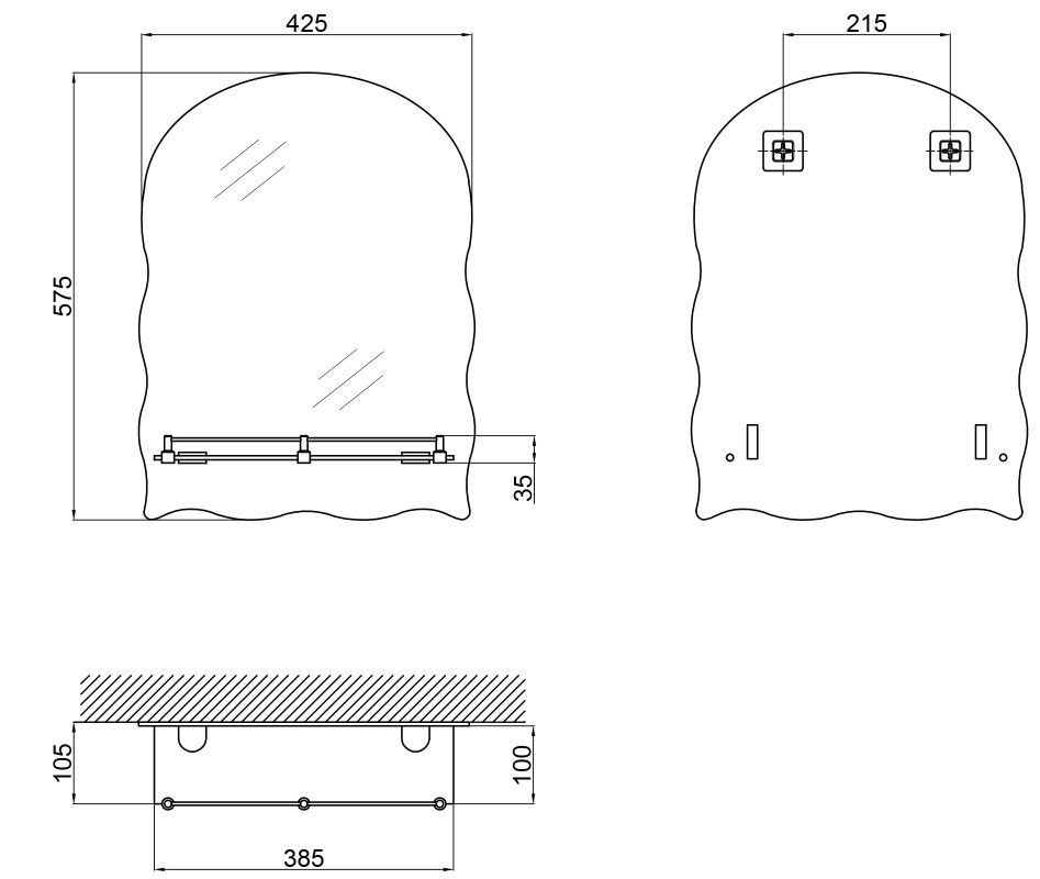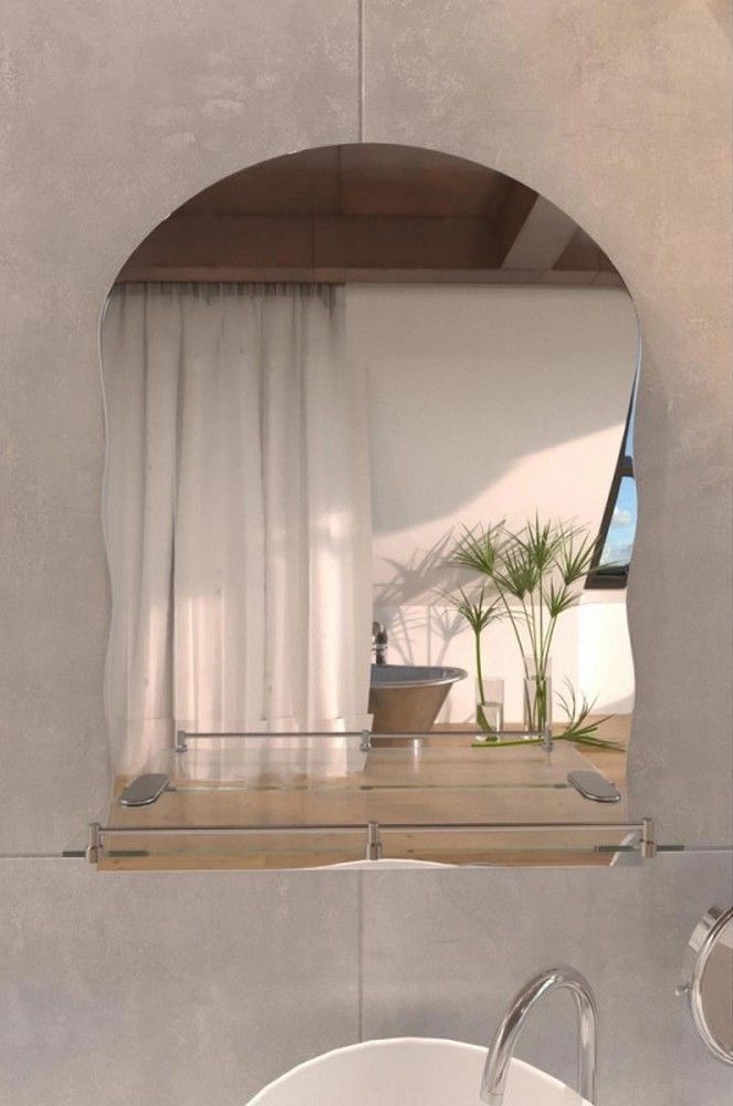 Зеркало прямоугольное Lidz Anny с полкой 425х575х105 крепится на стену с помощью шурупов, которые входят в комплект. Его можно поместить над умывальником в помещении с любым интерьером благодаря лаконичному дизайну. Зеркало выполнено с дугообразным верхом и фигурными боками. Комплектуется вместе с полочкой 385х115 мм из прозрачного стекла с хромированным бортиком, что предотвращает случайное падение гигиенических средств. Полка крепится к зеркалу с помощью металлических держателей.