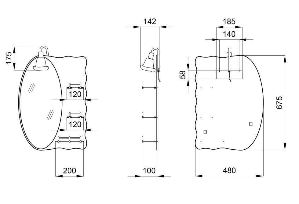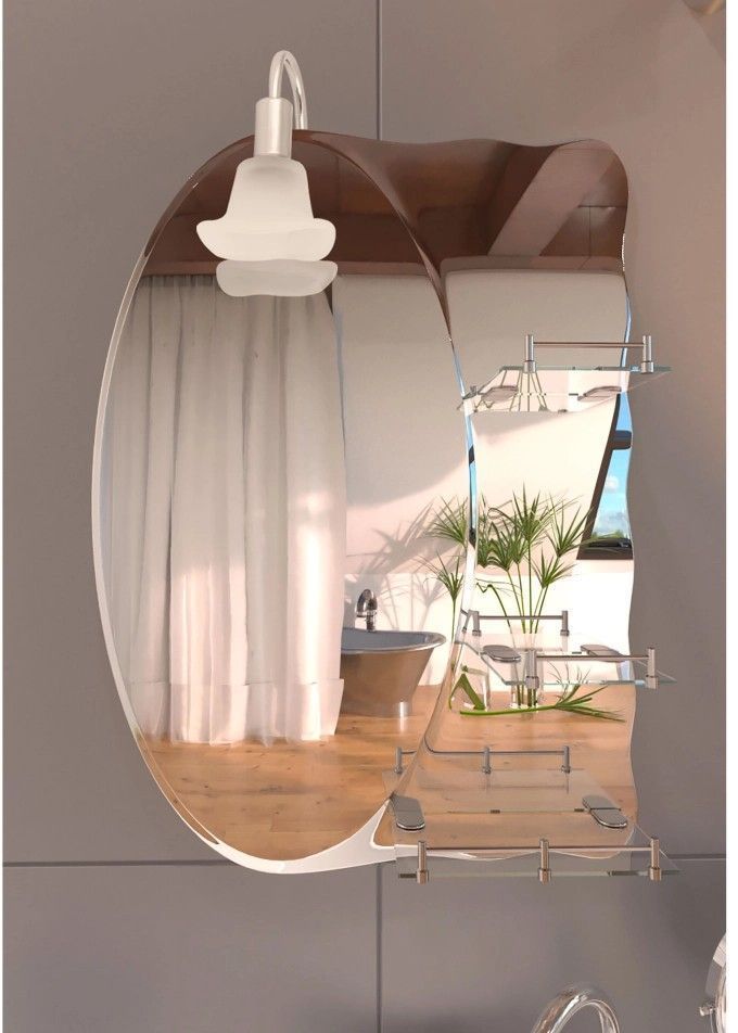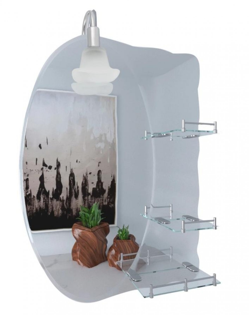 - Зеркало настенное (07.05) 480*675*100 мм, асимметричное, с 3 полками и светильником